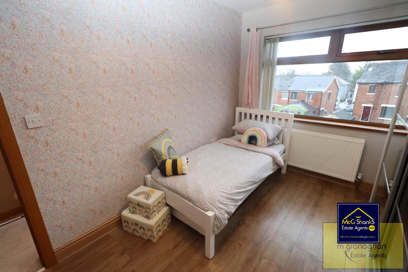 Laminate flooring, built in wardrobe