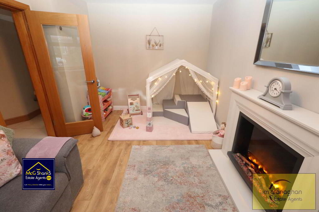 Upon entering, you are welcomed into a bright and airy reception room, featuring large double glazed windows that flood the space with natural light. The room provides ample space for both relaxing and entertaining, with neutral décor and quality flooring that complements the overall contemporary feel of the home.