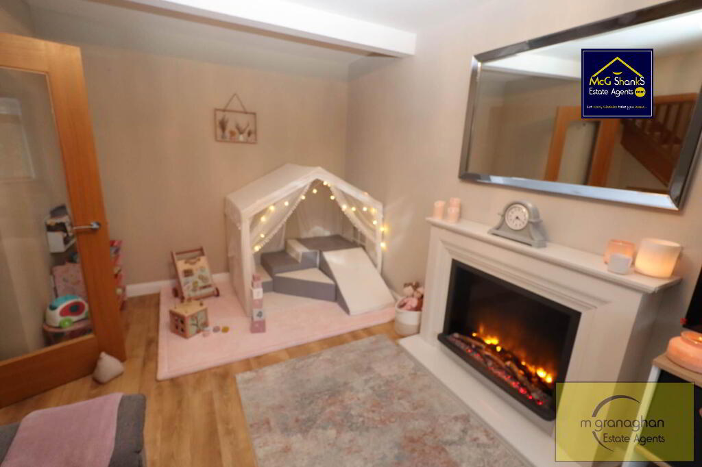 Laminate flooring, Feature fireplace with inset decorative fire.