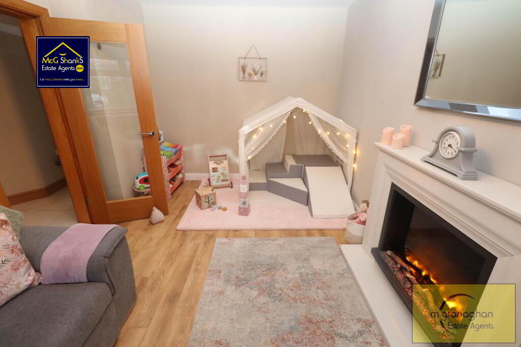 Upon entering, you are welcomed into a bright and airy reception room, featuring large double glazed windows that flood the space with natural light. The room provides ample space for both relaxing and entertaining, with neutral décor and quality flooring that complements the overall contemporary feel of the home.